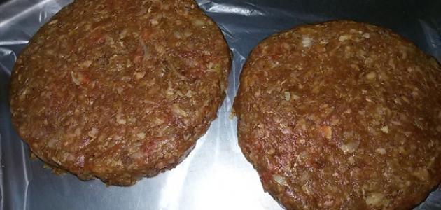 - نحمي الزيت النباتي في مقلاة على النار، ونقلي فيه البرغر، حتّى يتغيّر لونه، ويستوي.